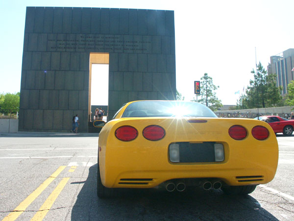 Oklahoma City Federal Building Memorial. was having a marathon for the Federal Building Memorial. In progress was the Oklahoma City Marathon commemorating the bombing. Spent a Moment of Silence in front of the Memorial. The wall and fence was covered with flowers, flags and messages.